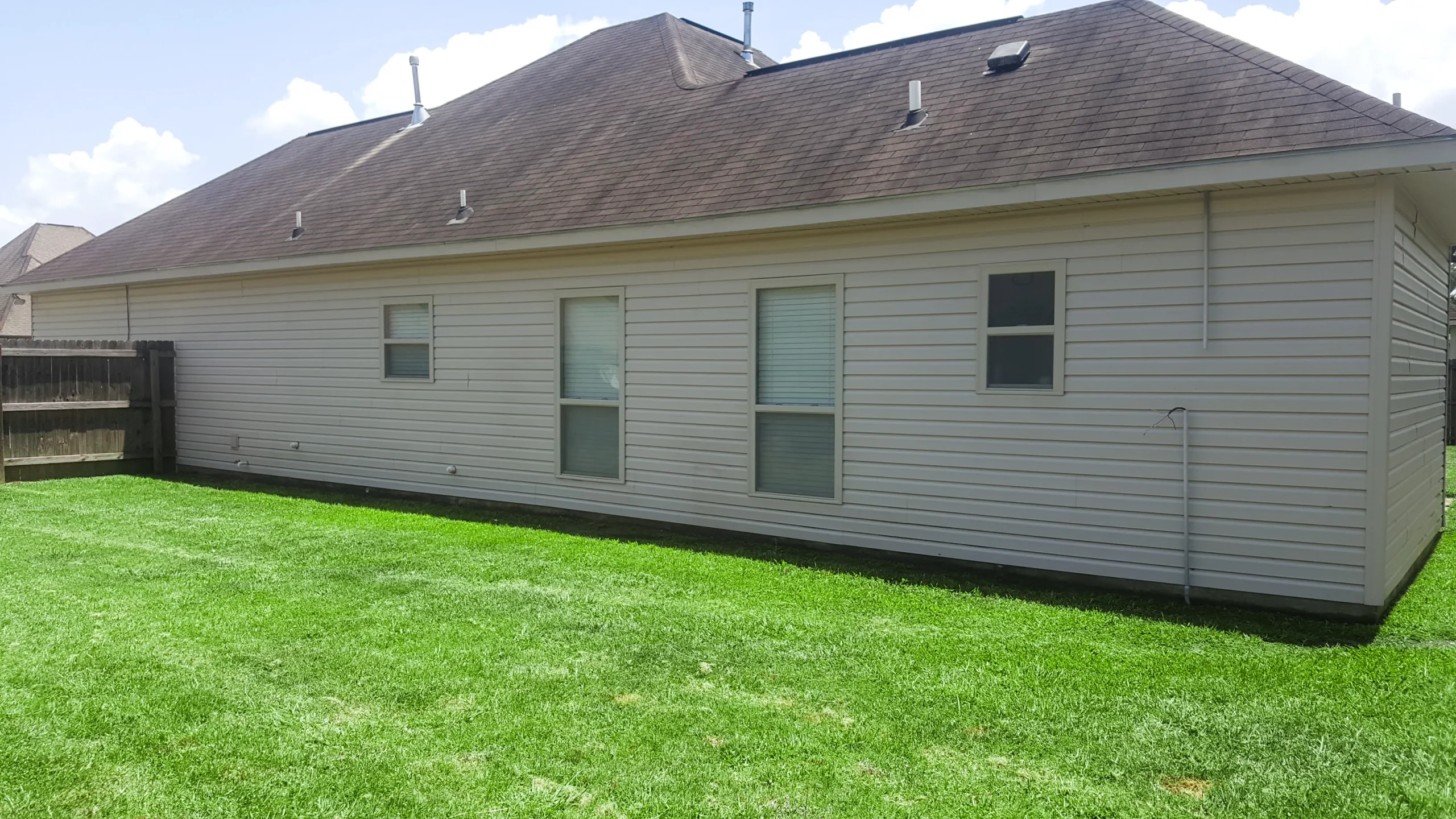 The white wooden wall was discolored by dirt, mildew, and weathering. We used pressure and power washing to clean the surface without damaging the wood.