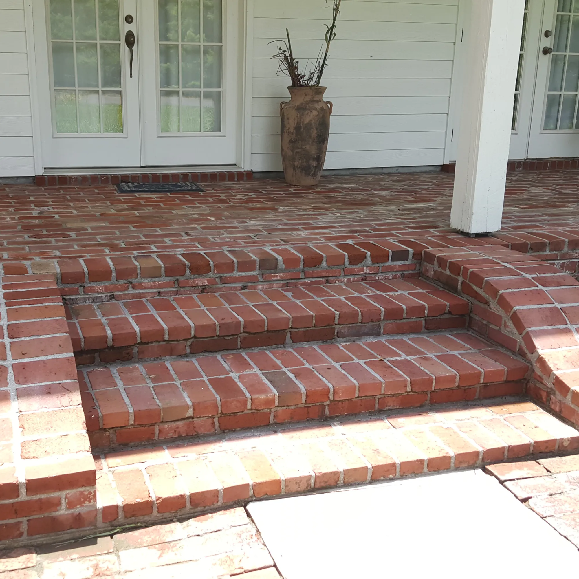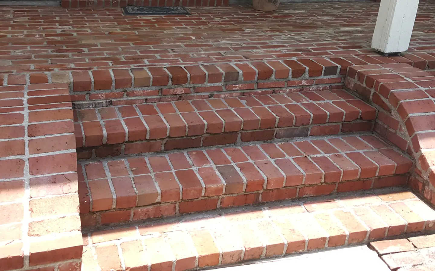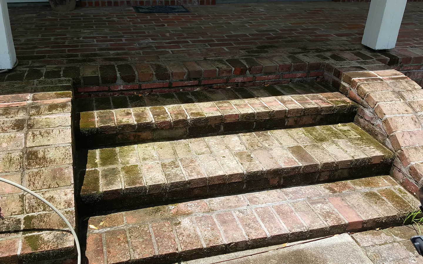 The brick stairs were covered in moss and grime, creating a slippery and unsafe surface. We thoroughly power-washed the bricks, eliminating moss and buildup.